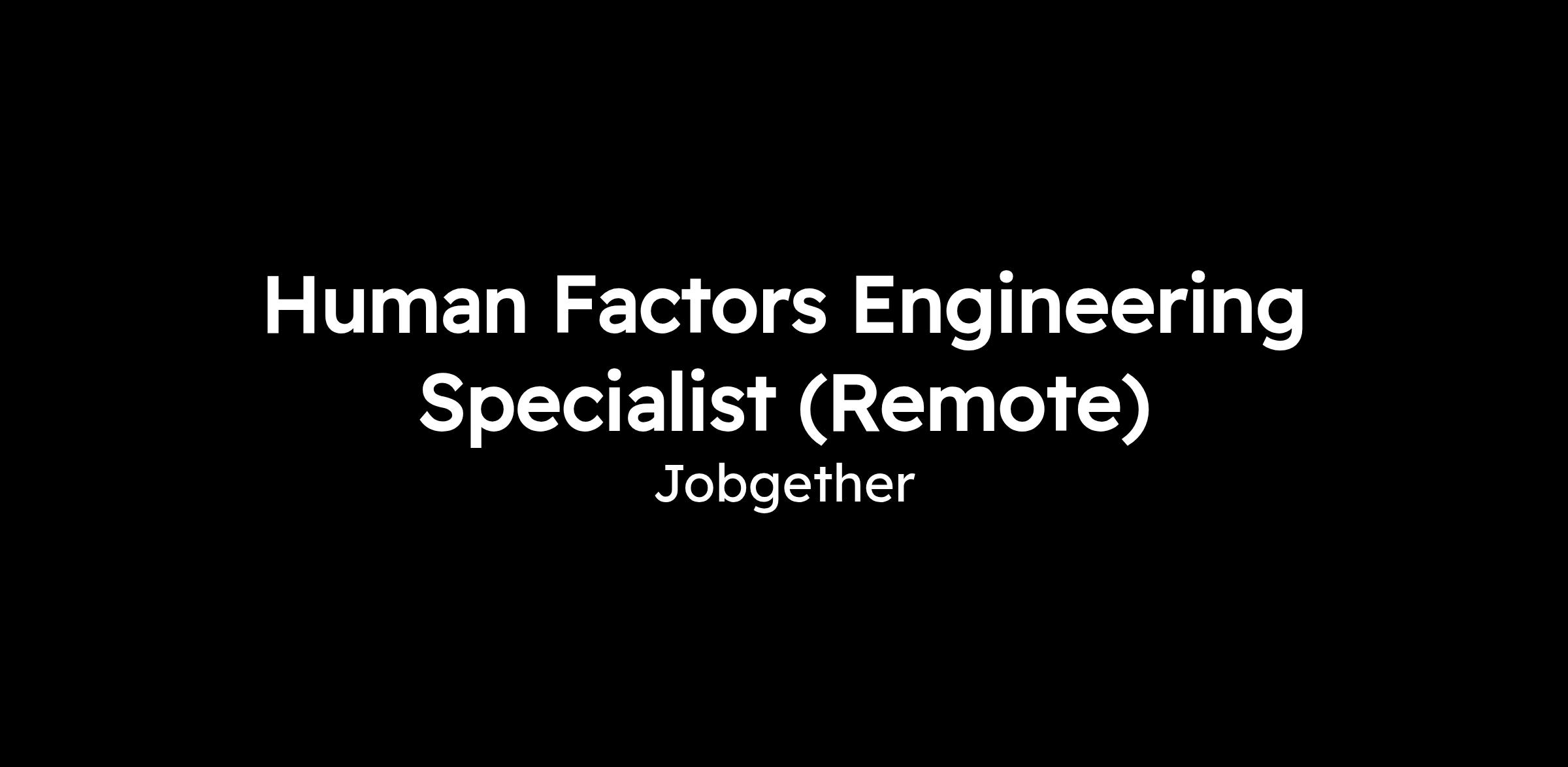 - Master's degree in Human Factors Engineering, Cognitive Systems Engineering, or related field.