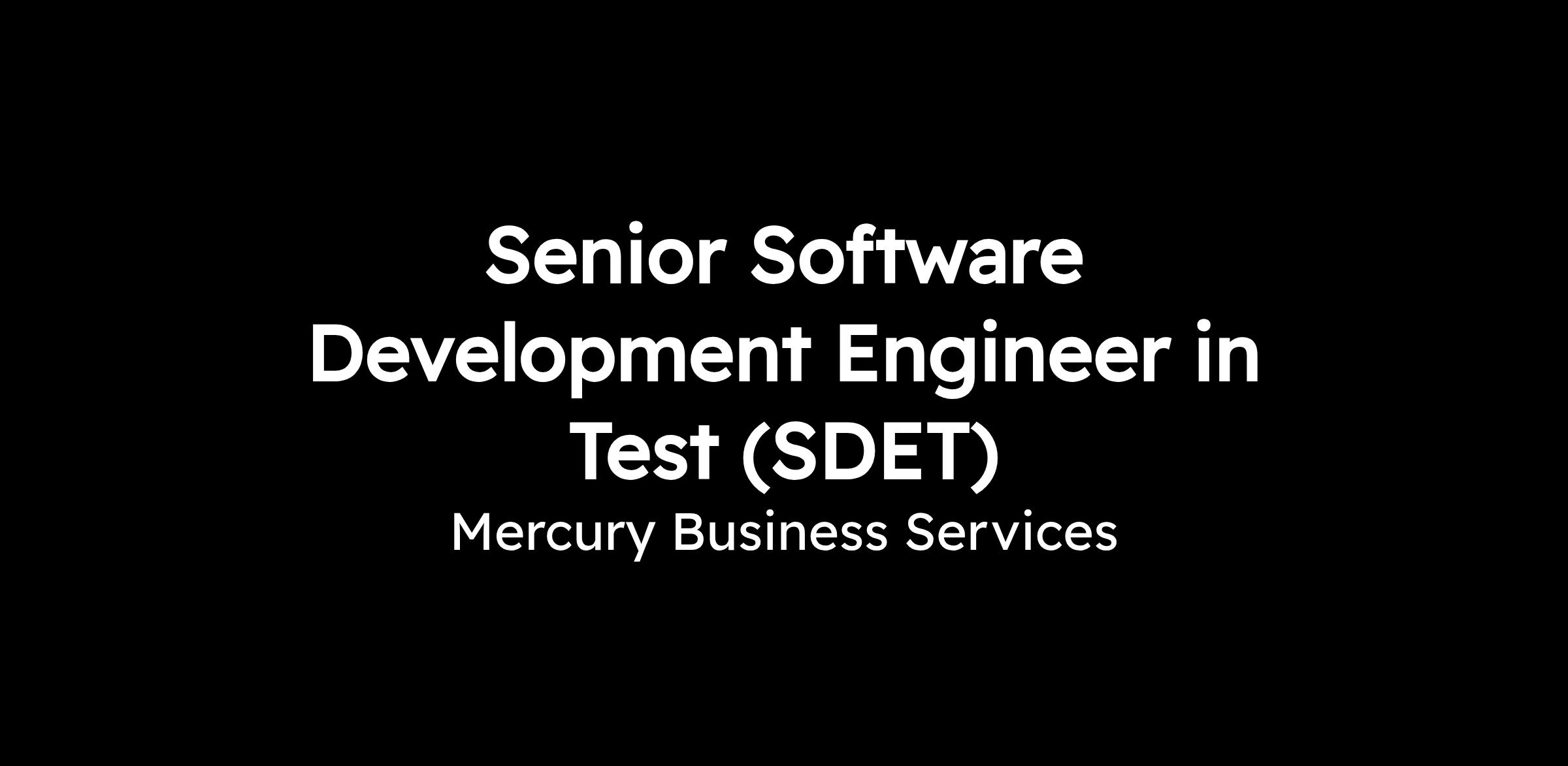 Senior Software Development Engineer in Test (SDET)
