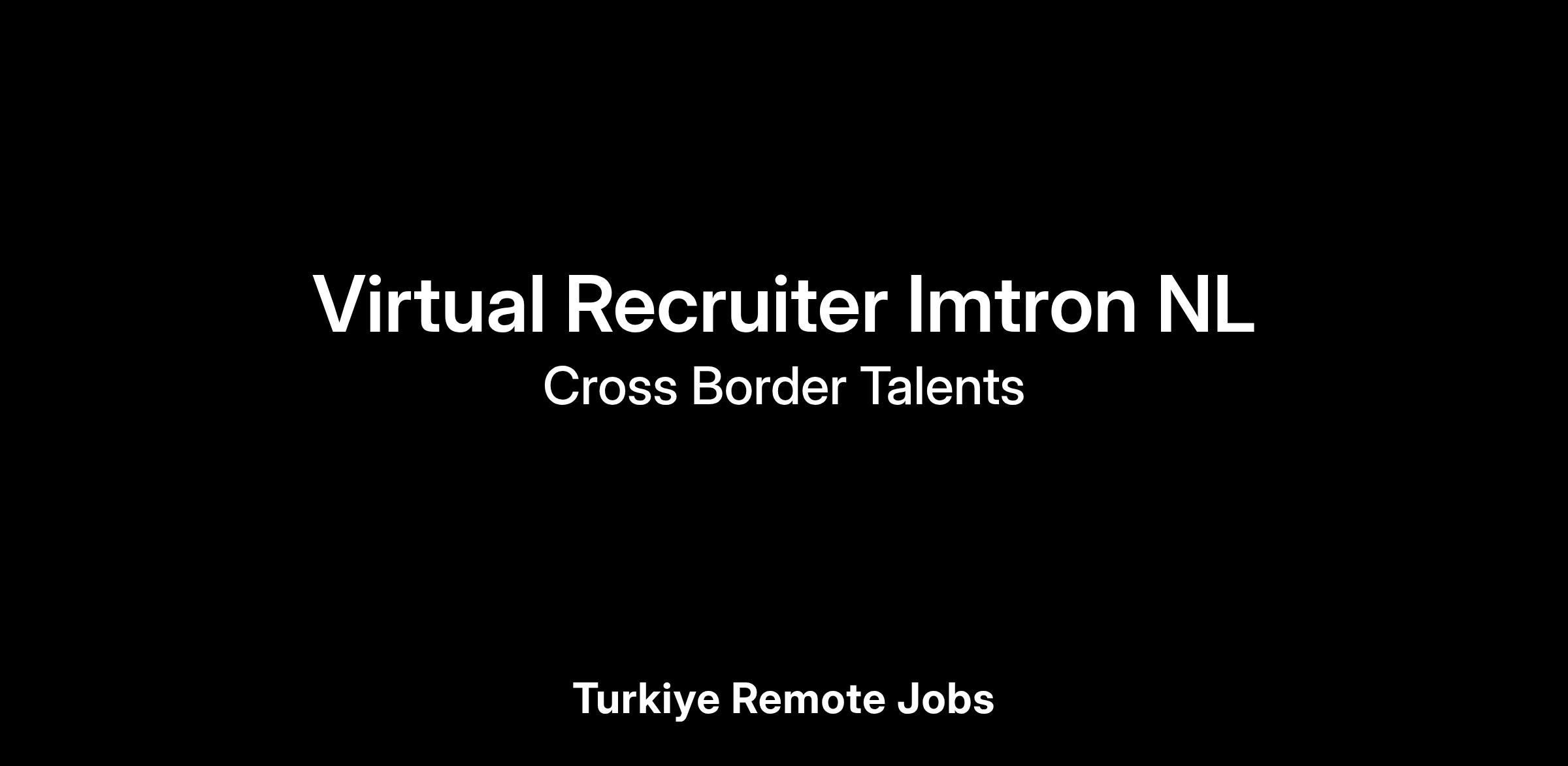 Are you fluent in Dutch and looking to advance your recruitment career with an international company? Join Imtron NL as a Virtual Recruiter and work remotely from anywhere in Turkey. Enjoy competitive pay, performance bonuses, and flexible working hours while gaining valuable experience in virtual recruitment.